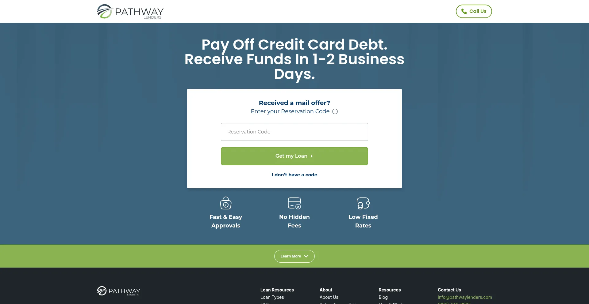 该网站实现数据收集表单,请求个人信息,包括姓名、电子邮件地址、电话号码或其他敏感详细信息。用户应验证 mypathwayloan.com 的合法性并在提交个人数据前查看隐私政策。