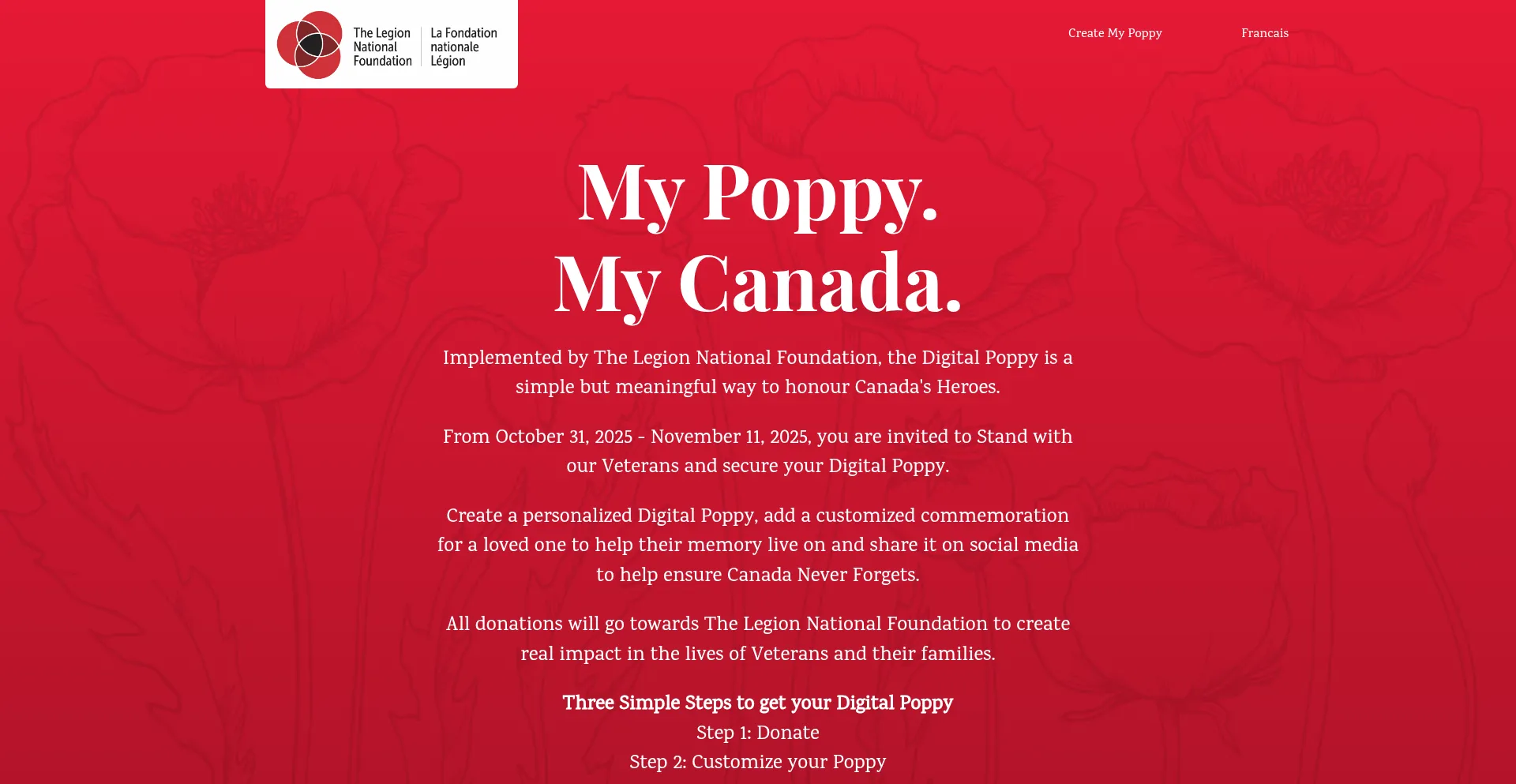 Implemented by The Legion National Foundation, the Digital Poppy is a simple but meaningful way to honour Canada's Heroes.