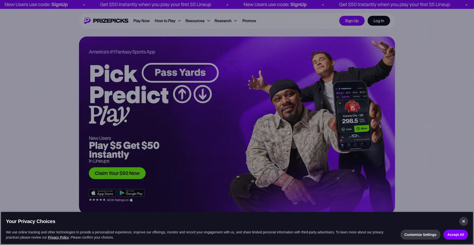 The easiest and fastest way to play Daily Fantasy Sports. Pick more or less on player stats to win up to 2000x your money! Play $5 -> Get $50 Instantly in lineups