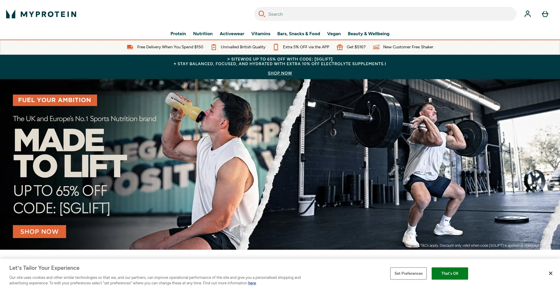 该网站实现符合GDPR或CCPA等隐私法规的cookie同意机制。这表明 myprotein.com.sg 遵守数据保护标准并为用户提供对个人数据收集实践的控制。