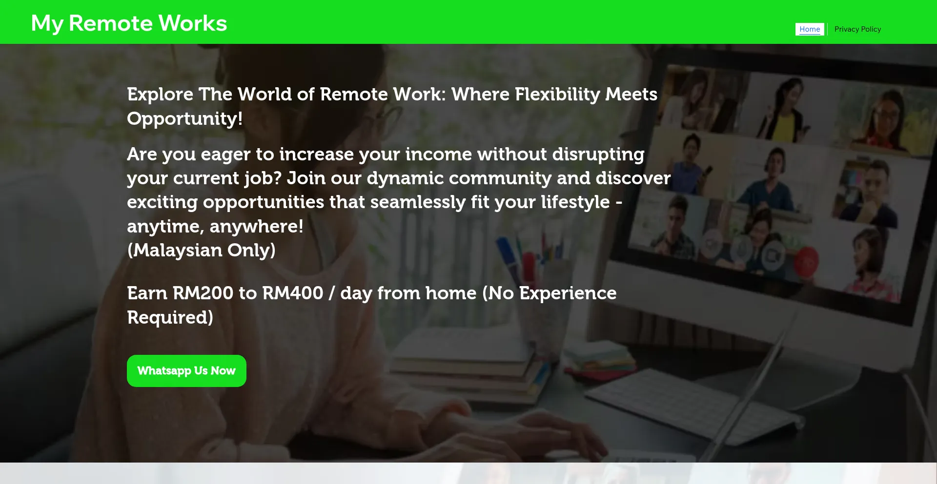 帮助保护他人,快在社交媒体上分享此页面吧!知道myremoteworks.com的人越多,骗子就越难得逞。 通过在社交媒体上分享此页面,帮助更多人发现可靠的myremoteworks.com吧!