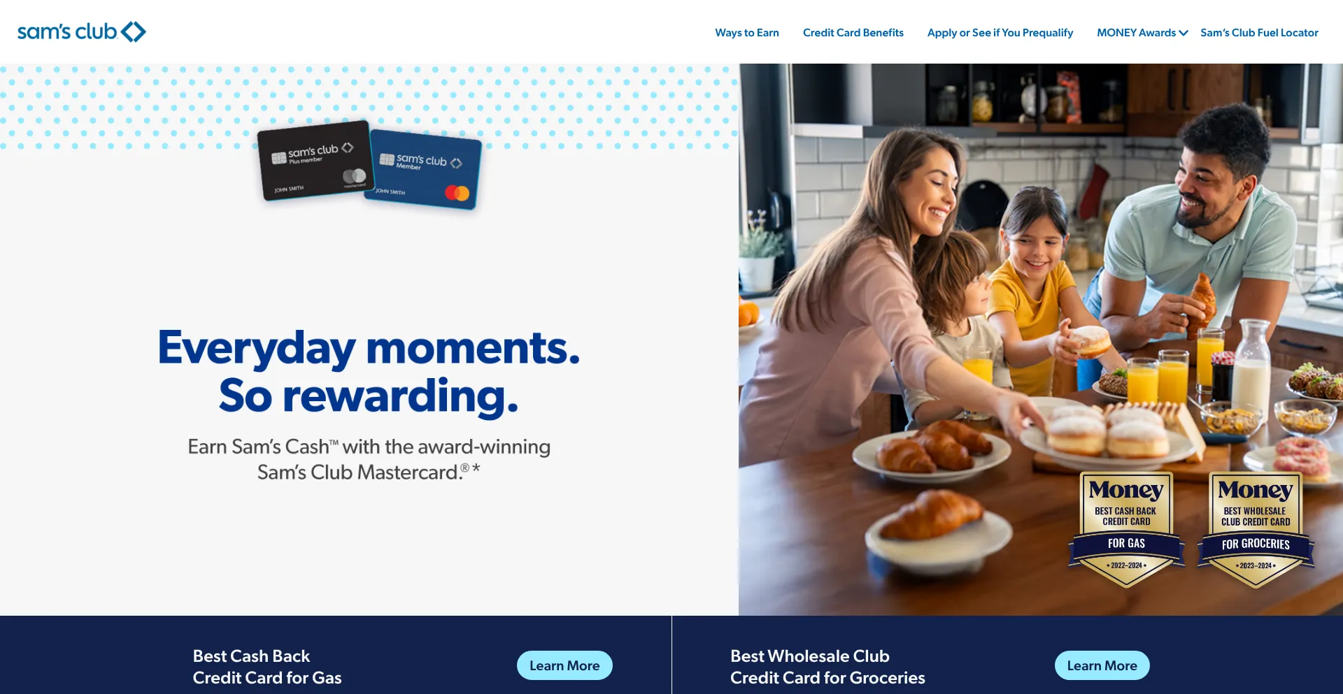 Sam's Club Mastercard was named by MONEY Magazine as the Best Cash Back Credit Card for Gas and Best Wholesale Credit Card for Groceries.