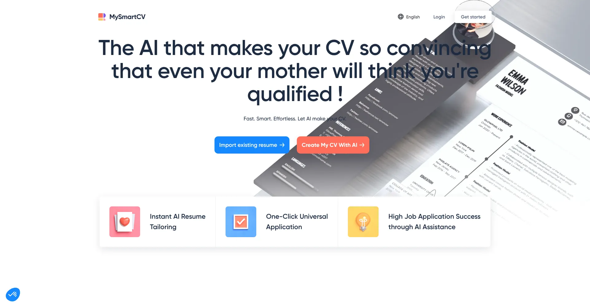MySmartCV: Best and Easiest CV and Cover Letter Builder Online. Make a CV in minutes thanks to our professional templates