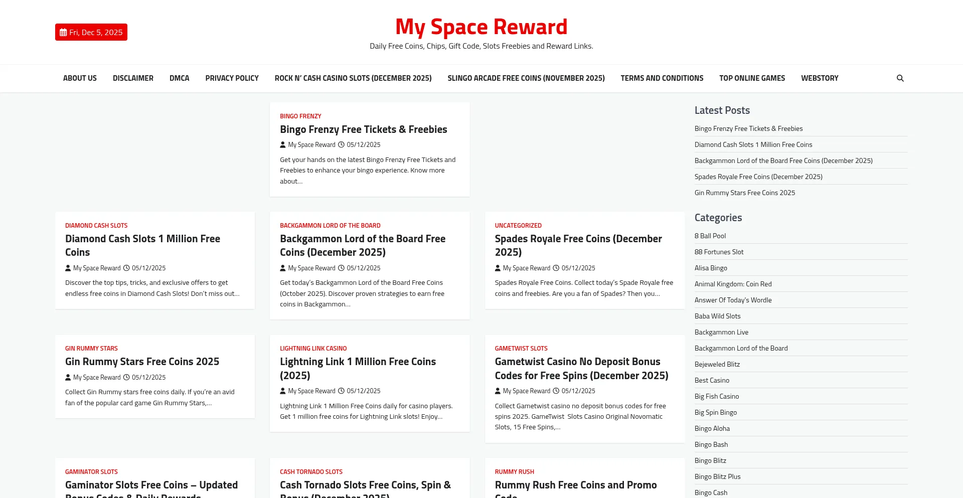 My Space Reward - Daily Free Coins, Chips, Gift Code, Slots Freebies And Reward Links.