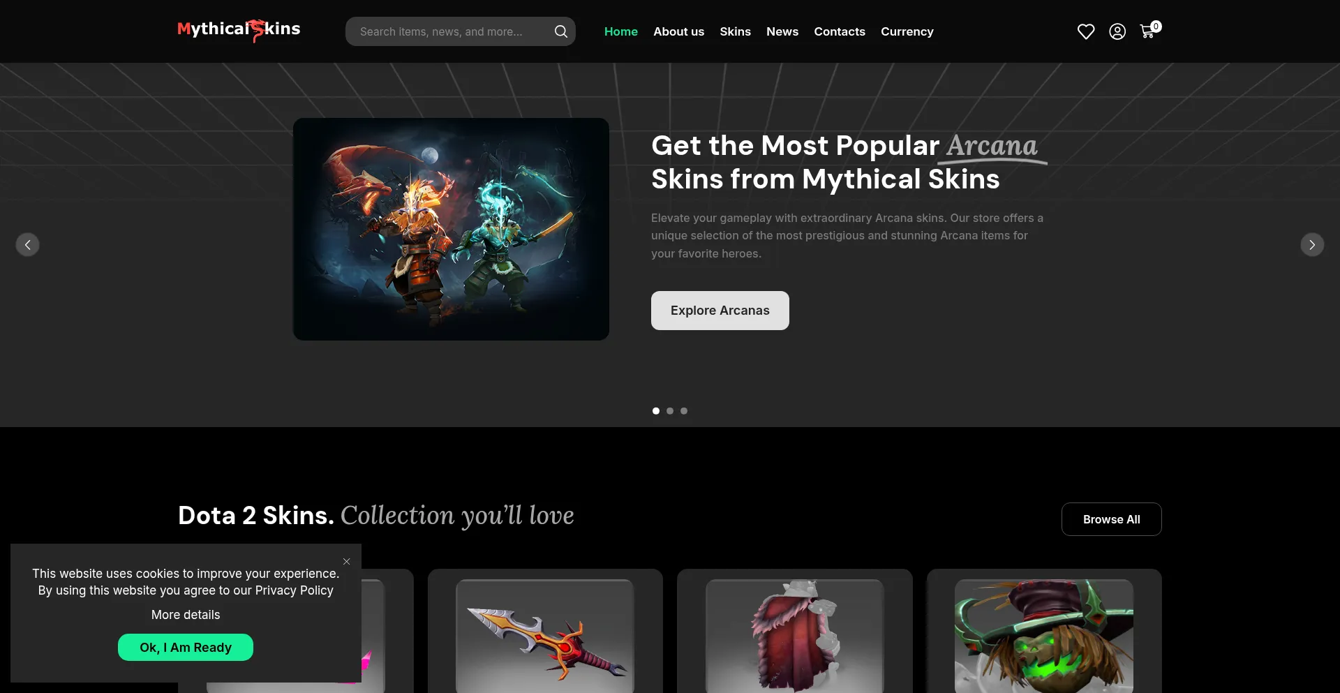 Improve your inventory with the exclusive Dota 2 skins, treasures, couriers and a lot of more. Visit Mythical Skins today!