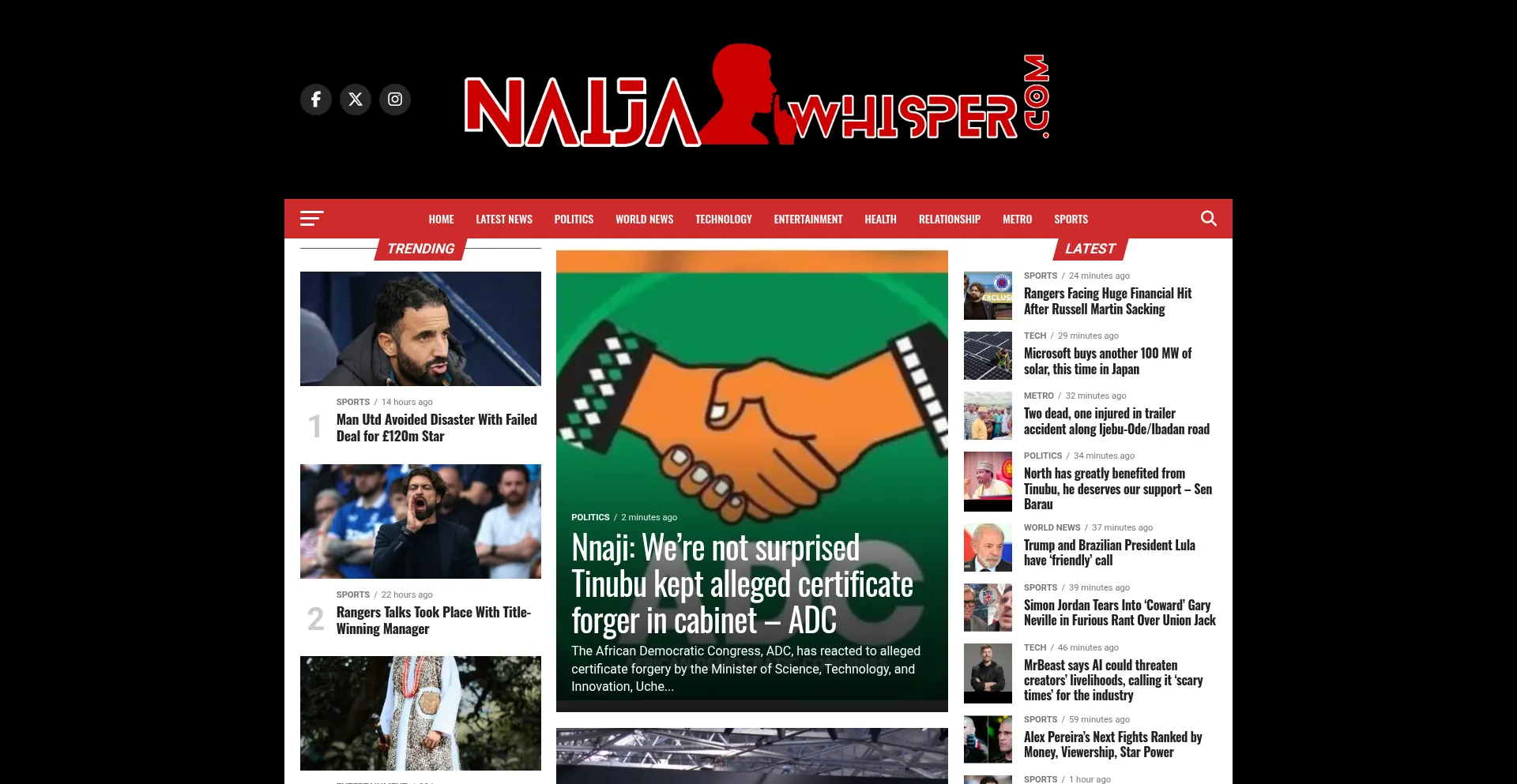网站上存在社交媒体链接表明 naijawhisper.com 在社交媒体上维护官方账户,这是可信度和参与度的积极信号。