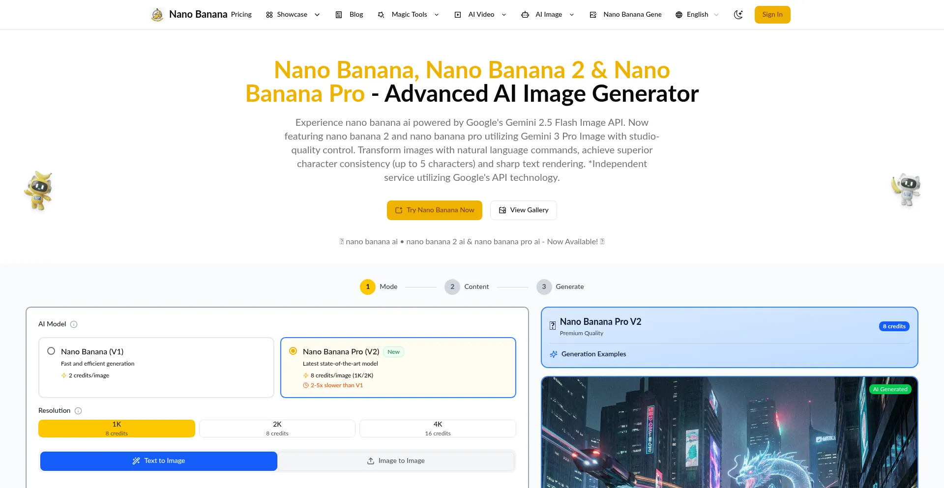 Nano Banana & Nano Banana 2 & Nano Banana Pro - Advanced AI Image Generator | Gemini 2.5 Flash & Gemini 3 Pro Image Preview API