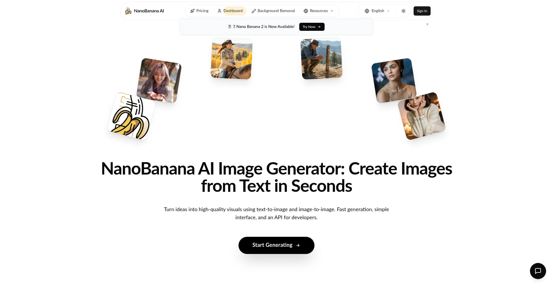 Generate stunning images from text with NanoBanana. Fast, simple, and developer-friendly with image-to-image and API access.