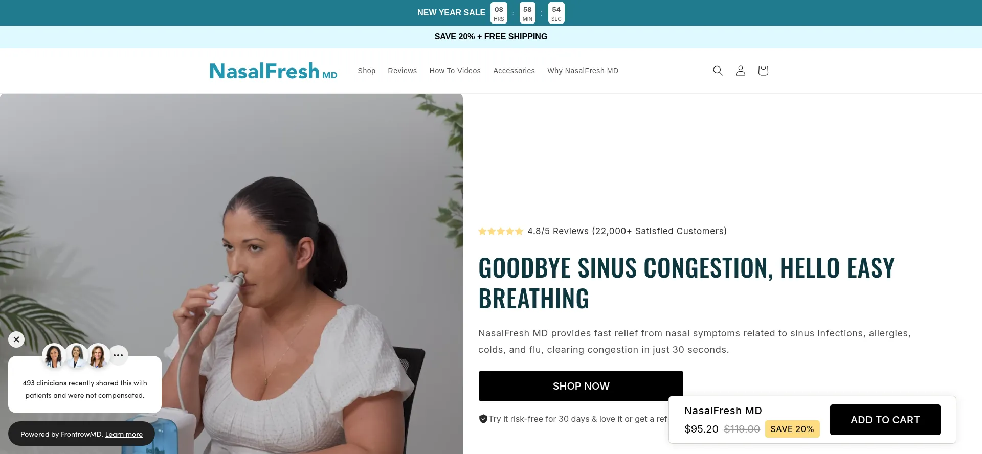 分析表明 nasalfreshmd.com 作为电子商务平台运营,促进商品或服务的在线交易。该网站实现了购物车功能、支付处理系统和产品目录功能,这些是商业零售运营的典型特征。