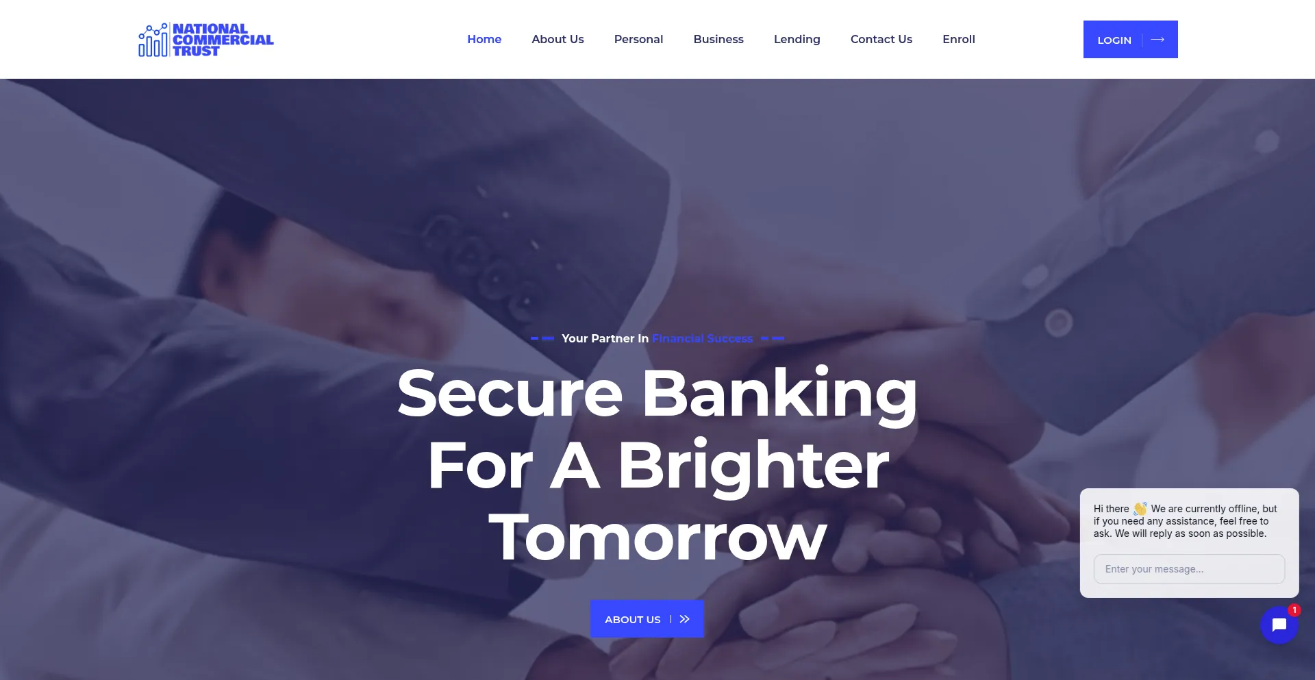该网站实现数据收集表单,请求个人信息,包括姓名、电子邮件地址、电话号码或其他敏感详细信息。用户应验证 nationalcommercialttb.com 的合法性并在提交个人数据前查看隐私政策。