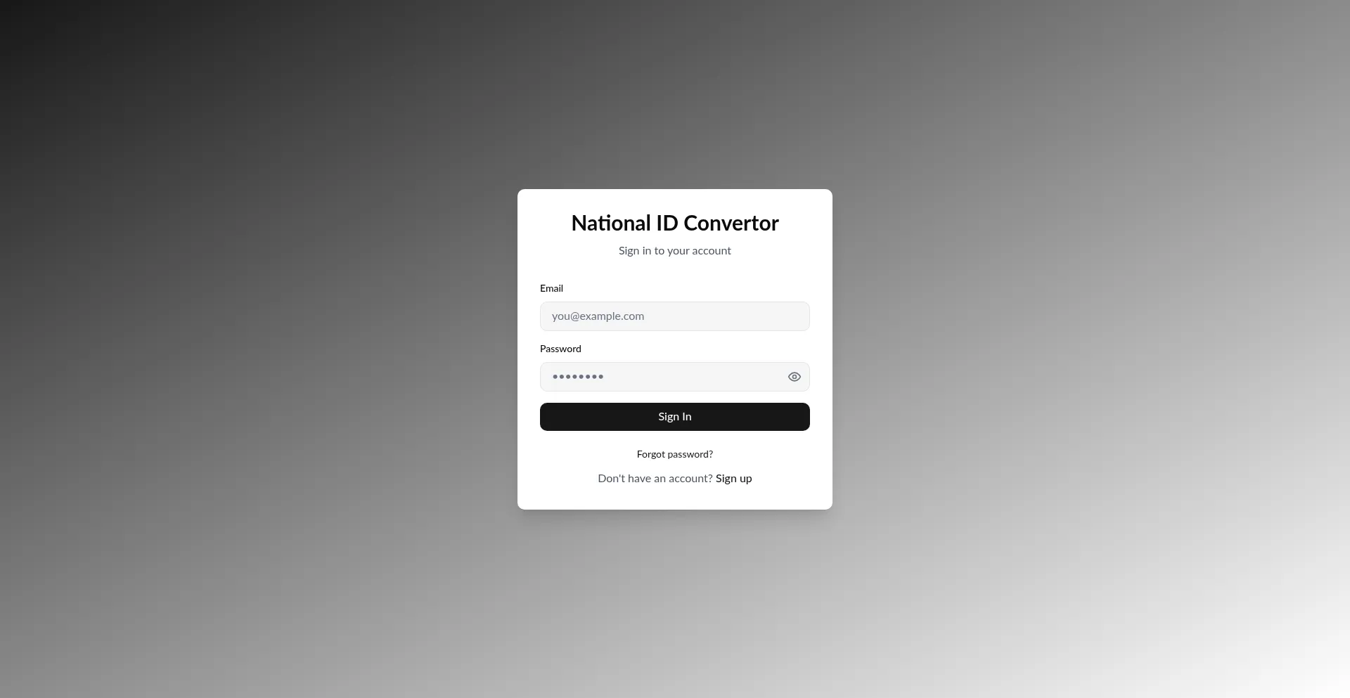 该网站实现数据收集表单,请求个人信息,包括姓名、电子邮件地址、电话号码或其他敏感详细信息。用户应验证 nationalidconvertor.com 的合法性并在提交个人数据前查看隐私政策。