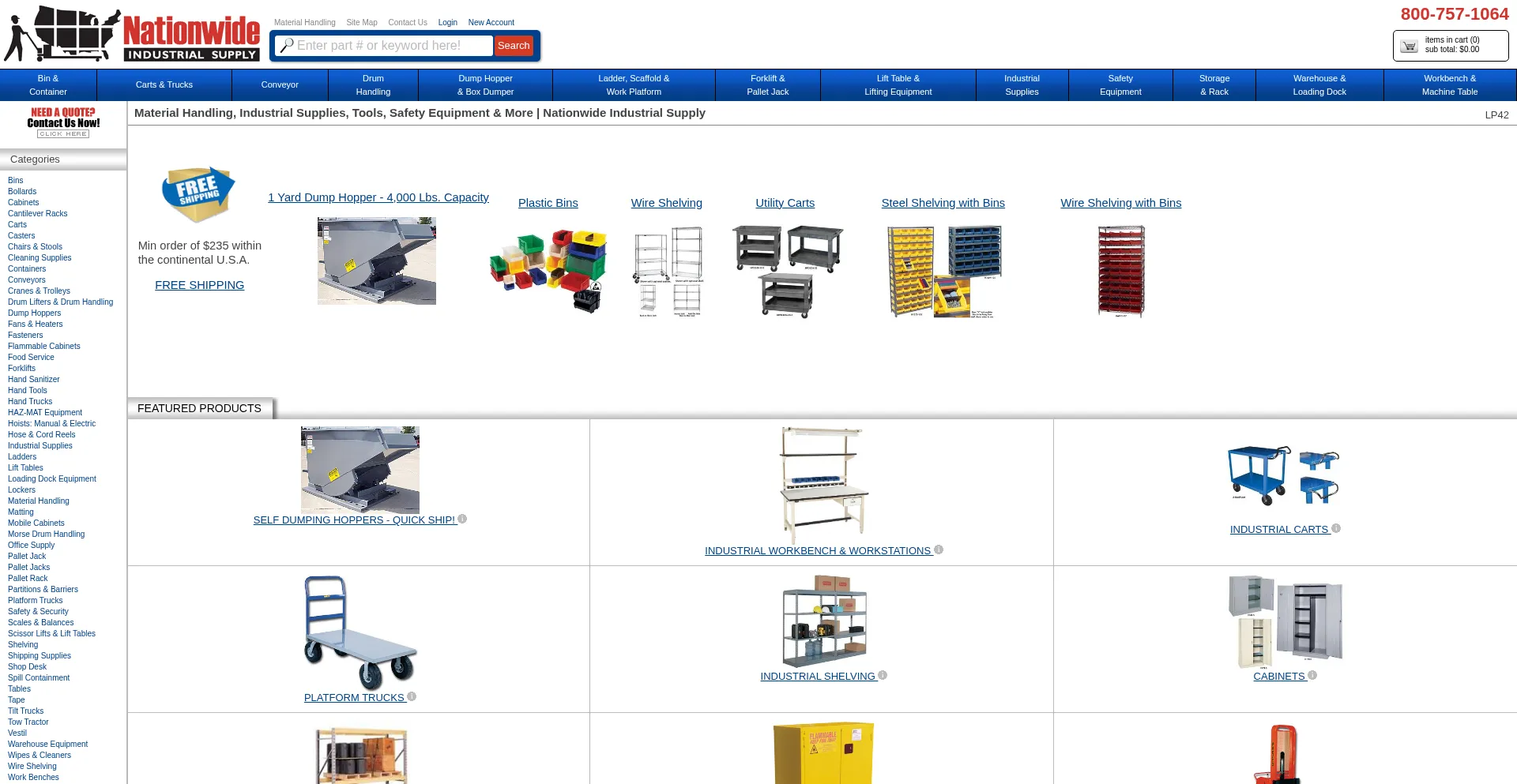 Find dump hoppers, workbenches, industrial shelving and other material handling supplies at Nationwide Industrial Supply. Low prices and great selection of products.