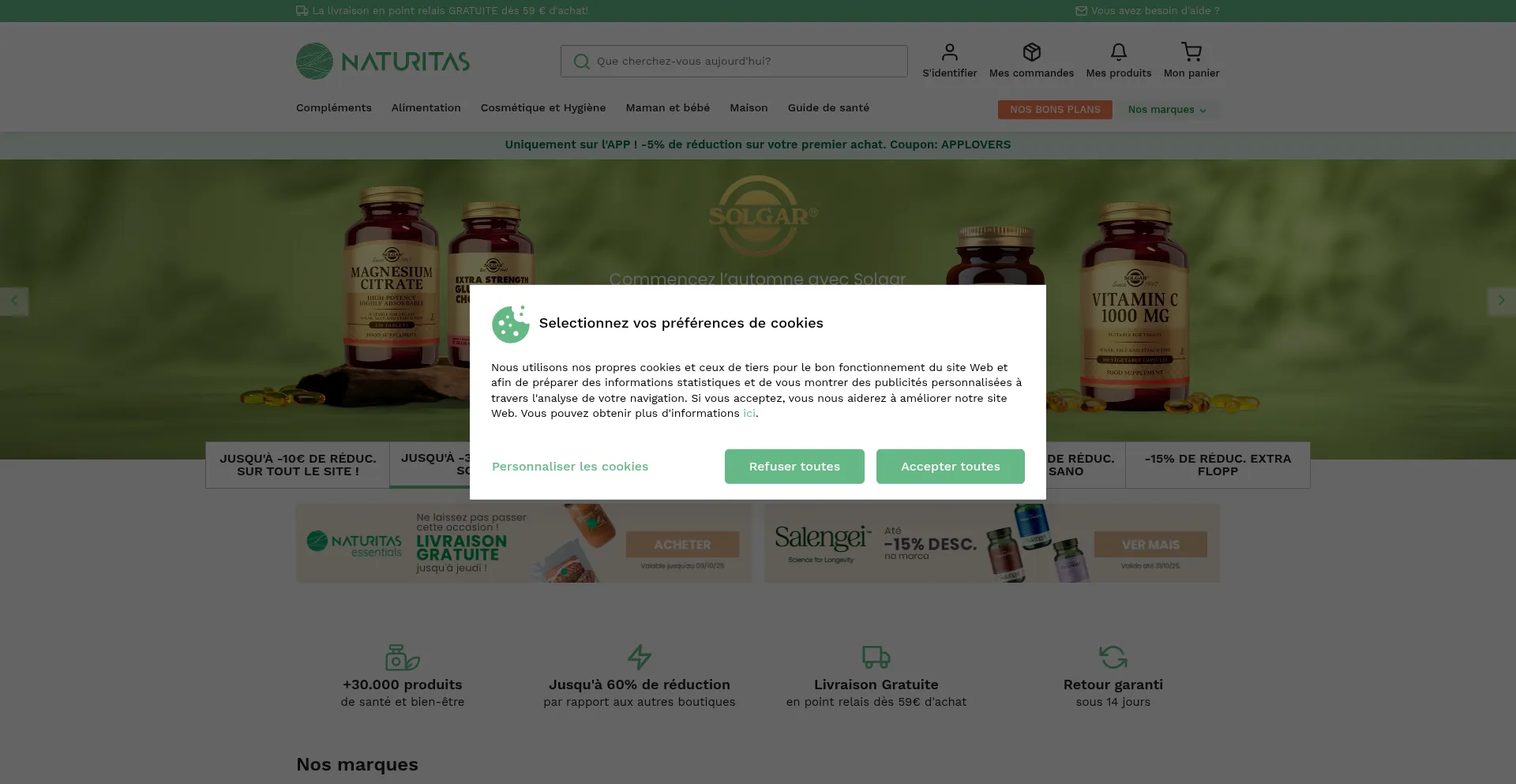 该网站实现符合GDPR或CCPA等隐私法规的cookie同意机制。这表明 naturitas.fr 遵守数据保护标准并为用户提供对个人数据收集实践的控制。
