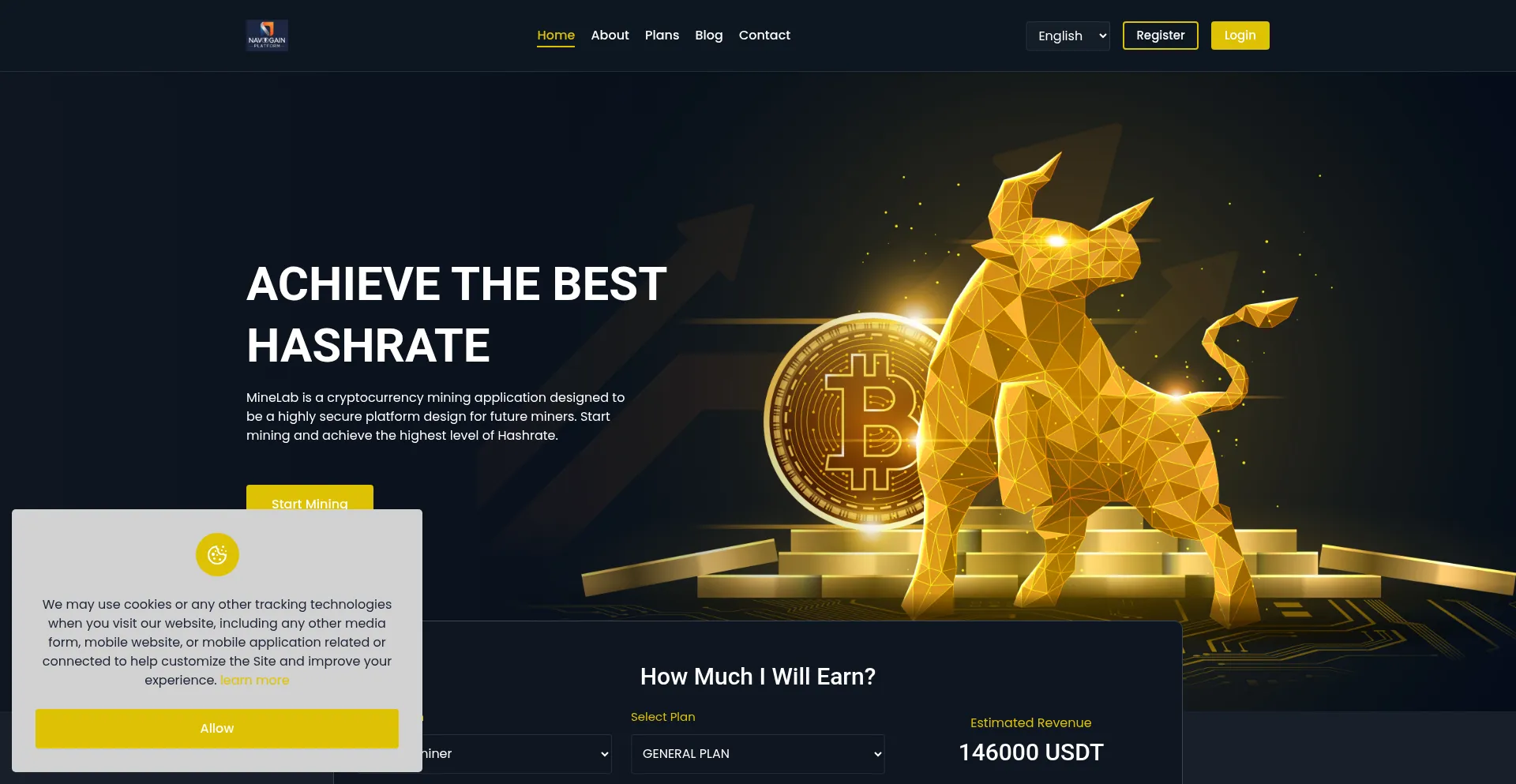 网站 navogain.com 可能提供云挖矿服务或加密货币挖矿投资。一些平台提供合法的挖矿租赁服务,而其他平台可能使用虚假的挖矿仪表板来显示无法提取的虚拟收益。