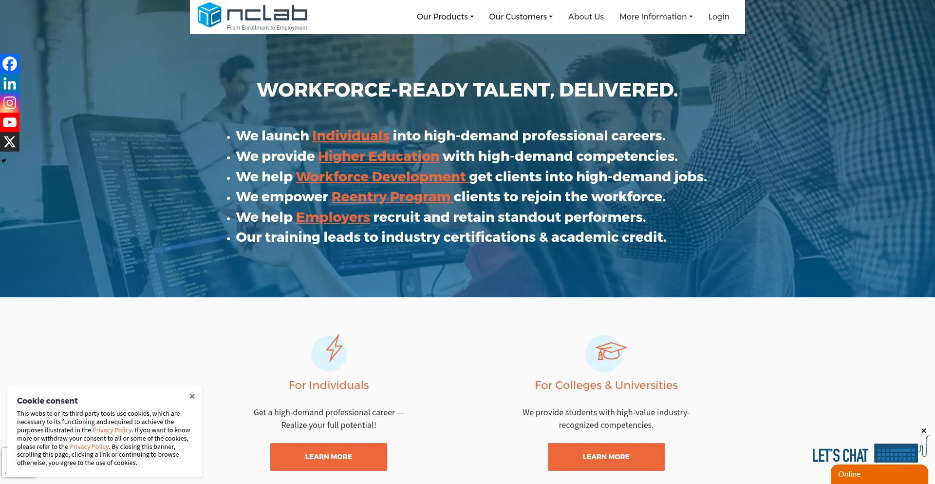 网站上存在社交媒体链接表明 nclab.com 在社交媒体上维护官方账户,这是可信度和参与度的积极信号。