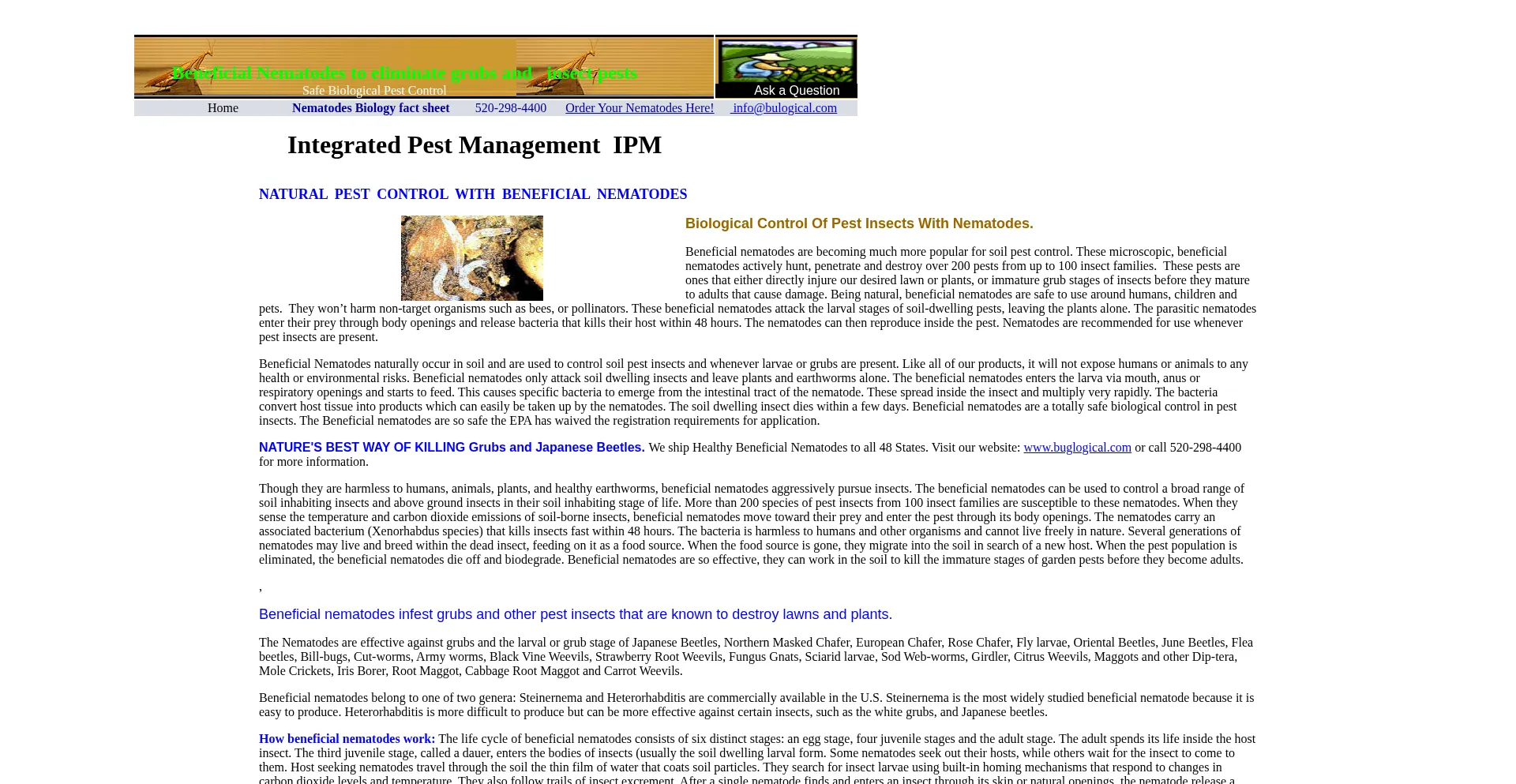 Beneficial nematodes provides solutions to grubs and Japanese beetle control and elimination, landscaper, farmer, and greenhouse. Source for nematodes and natural beneficial in...