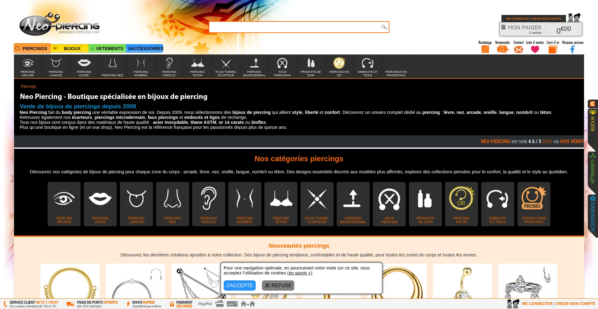Pour l'achat de votre nouveau piercing, faites confiance à un pro. Service clients de qualité - Envoi 24h - Grand choix - Bijoux en stock. Plusieurs gammes de piercings.