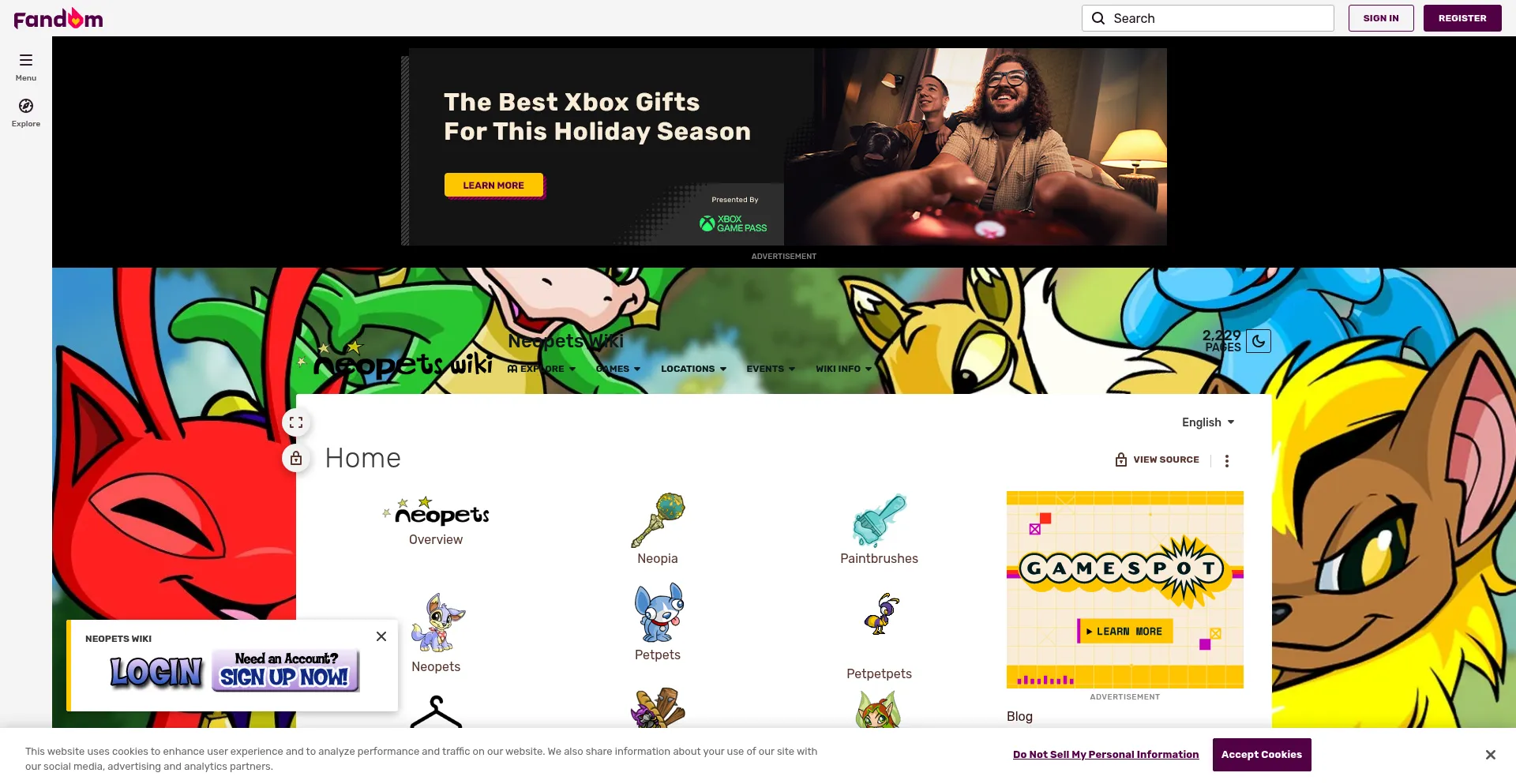 该网站实现符合GDPR或CCPA等隐私法规的cookie同意机制。这表明 neopets.fandom.com 遵守数据保护标准并为用户提供对个人数据收集实践的控制。