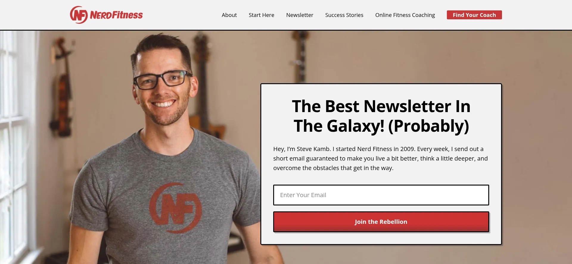 该网站实现数据收集表单,请求个人信息,包括姓名、电子邮件地址、电话号码或其他敏感详细信息。用户应验证 nerdfitness.com 的合法性并在提交个人数据前查看隐私政策。