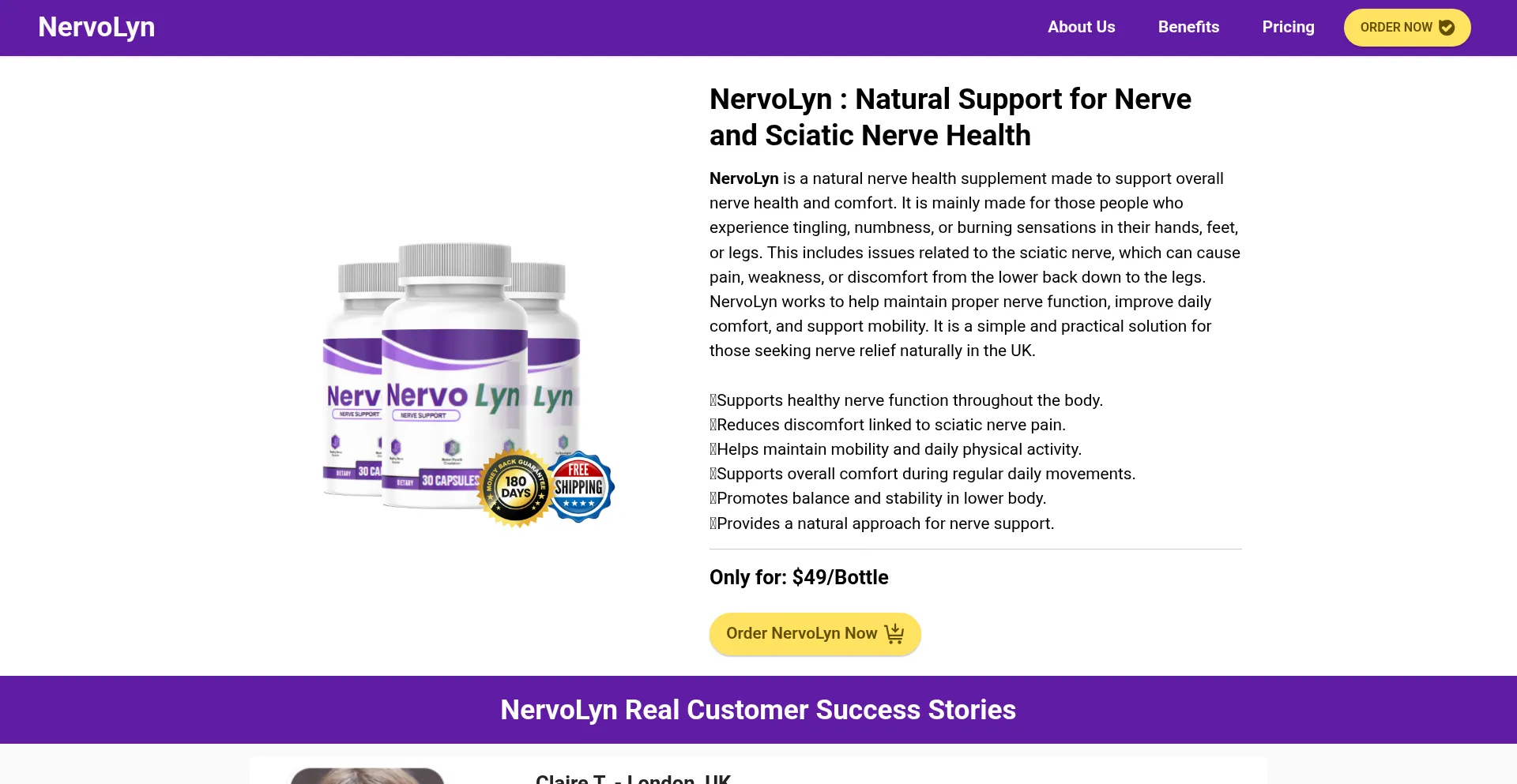 NervoLyn is a natural nerve health support supplement that improves nerve function, supports the sciatic nerve, reduces discomfort, and boost better mobility.