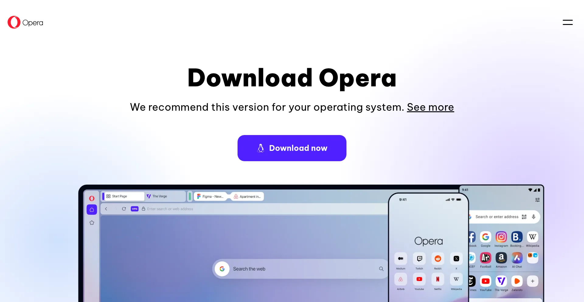 Download the Opera browser for computer, phone and tablet. Opera for Mac, Windows, Linux, Android and iOS. Free VPN, Ad Blocker, built-in messengers.
