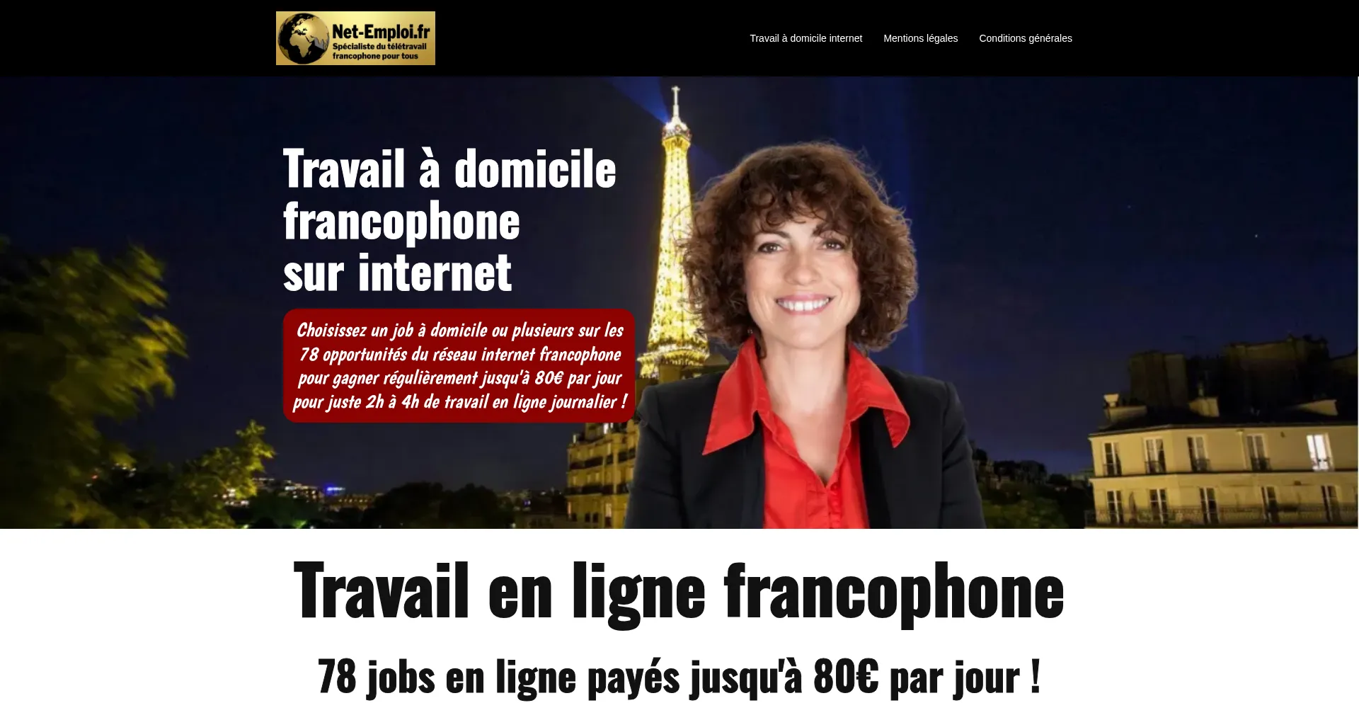 Spécialiste du travail à domicile sur internet. 78 jobs en ligne francophones rémunérés jusqu'à 80€ par jour pour 2h à 4h de télétravail par jour.