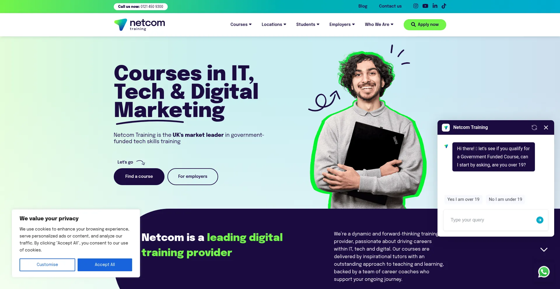 netcomtraining.co.uk 使用 Google Tag Manager 在其网站上添加和更新追踪代码(标签)。