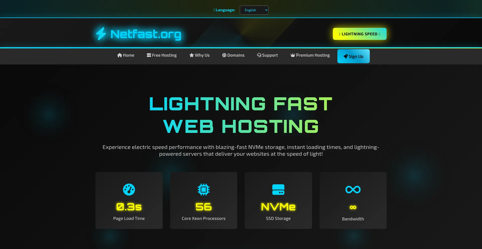 Lightning Fast Web Hosting | Electric Speed Performance | Netfast.org