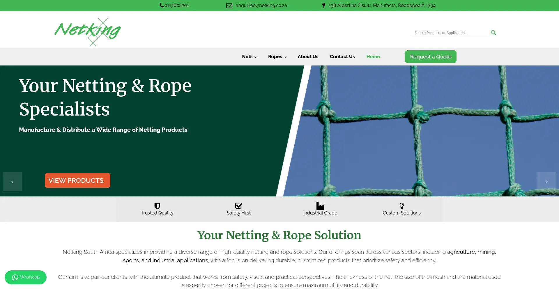Netking is a manufacturer and distributor of rope, sport nets, cargo nets, safety nets, custom made nets and many other netting products.