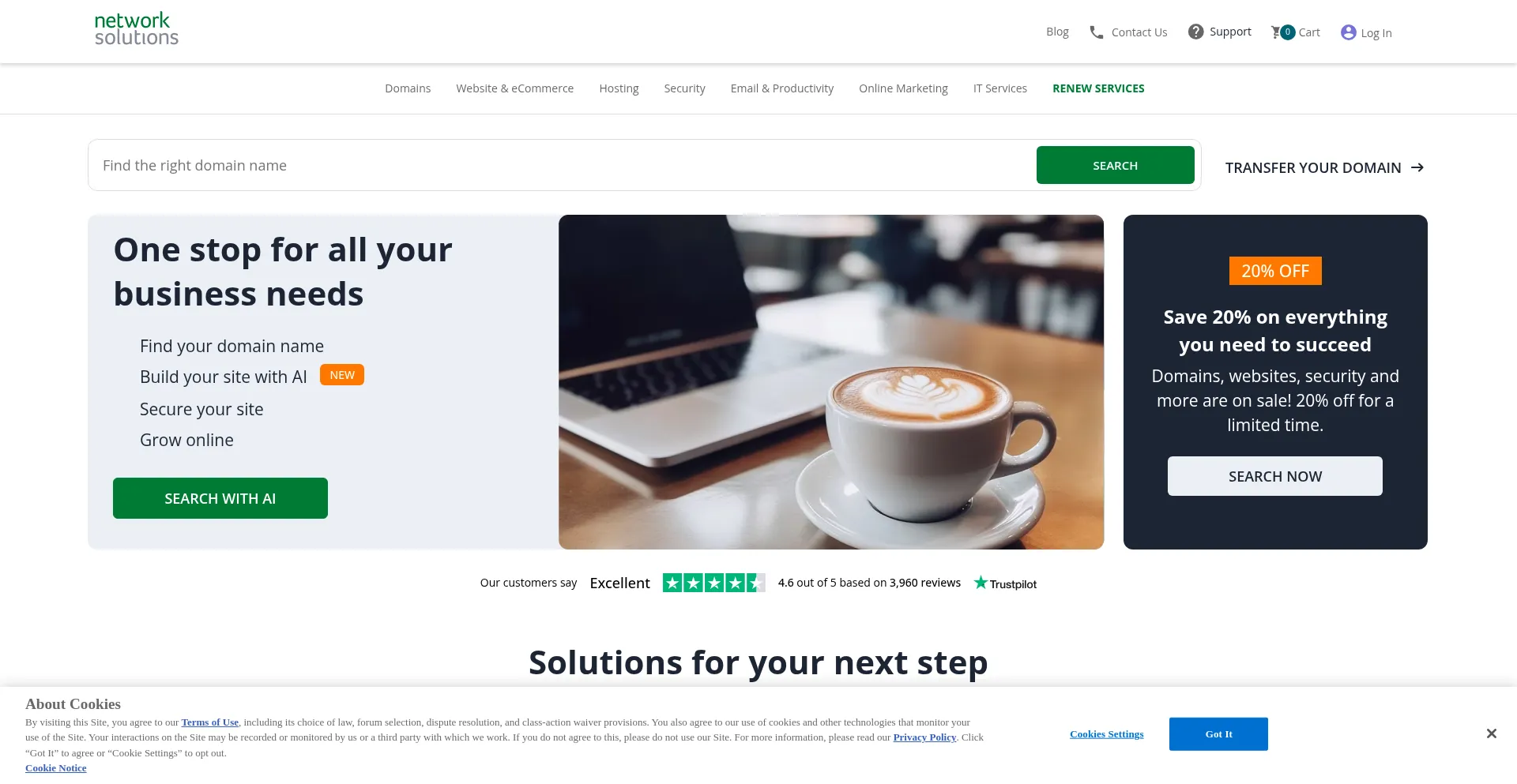 Build your online presence with Network Solutions—AI website builder, domain name, and trusted hosting, all in one place.