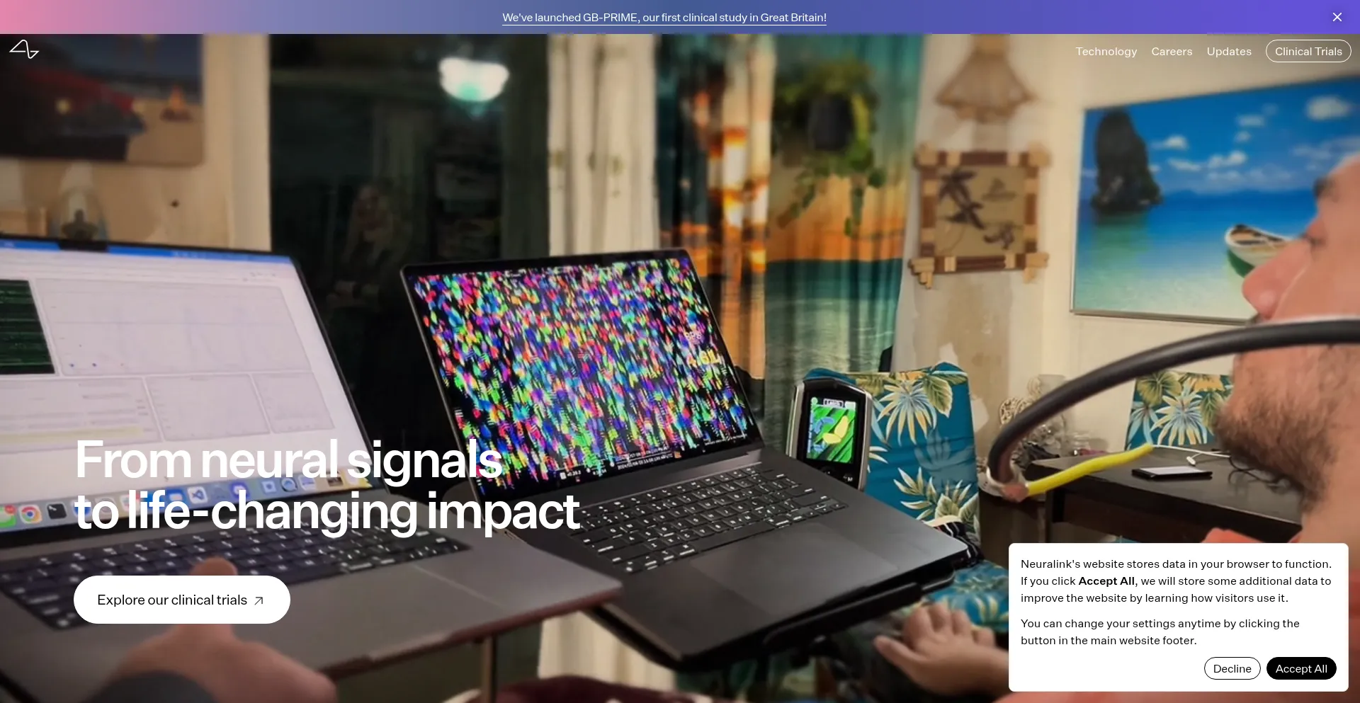 该网站实现符合GDPR或CCPA等隐私法规的cookie同意机制。这表明 neuralink.com 遵守数据保护标准并为用户提供对个人数据收集实践的控制。