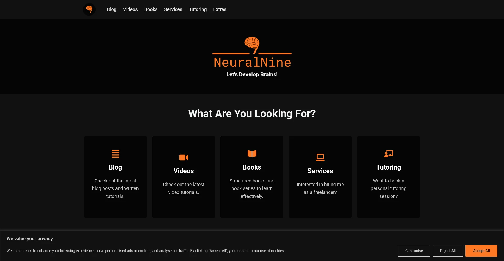 该网站实现符合GDPR或CCPA等隐私法规的cookie同意机制。这表明 neuralnine.com 遵守数据保护标准并为用户提供对个人数据收集实践的控制。