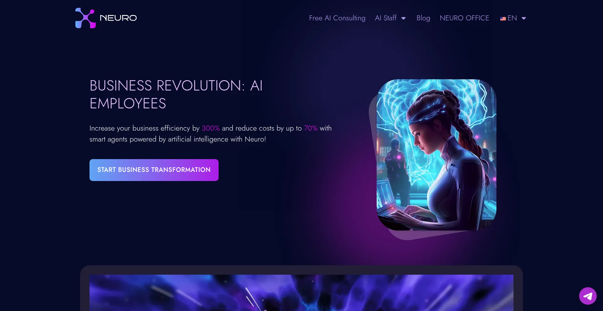 Increase your business efficiency by 300% and reduce costs by up to 70% with smart agents powered by artificial intelligence with Neuro!