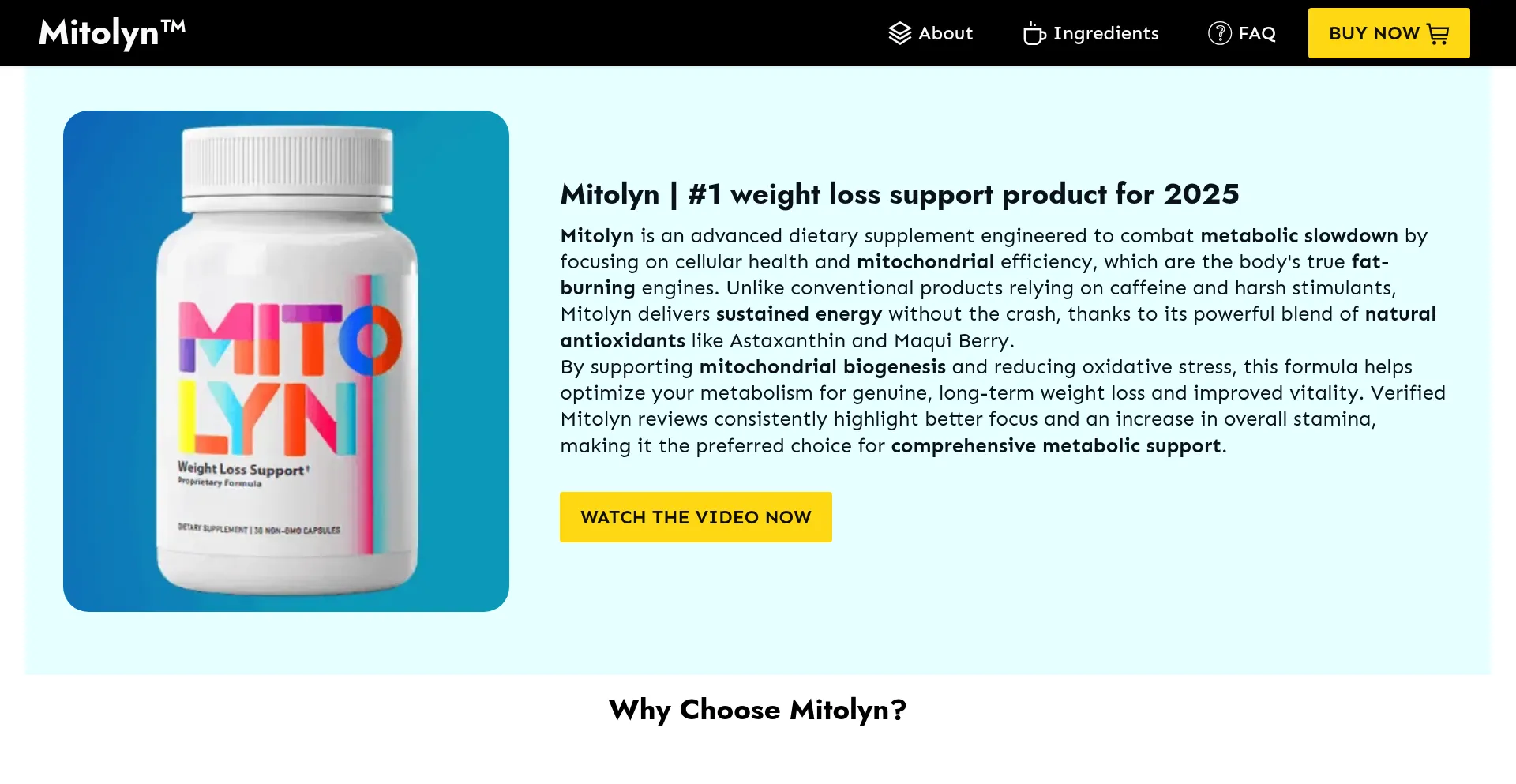 Mitolyn is marketed as a dietary supplement focused on boosting metabolism and energy by targeting the body's mitochondria (often called the