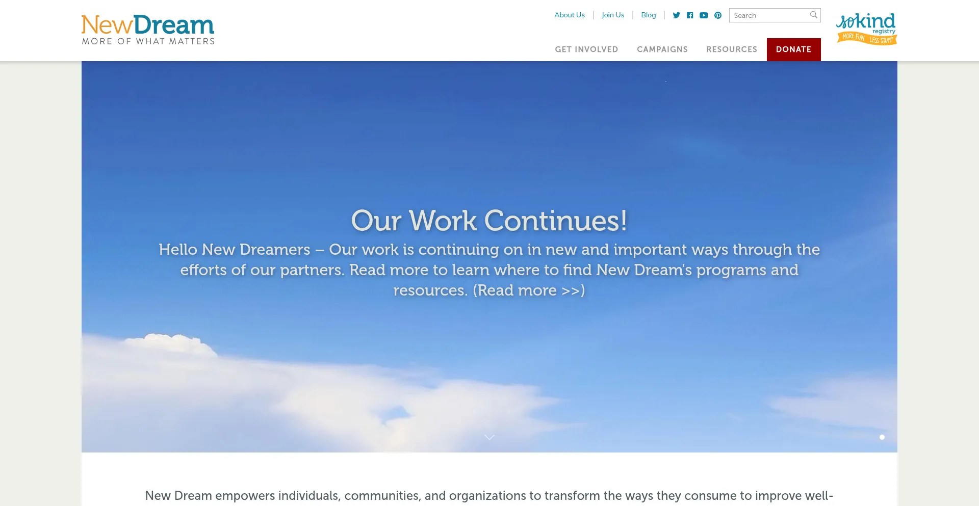 New Dream (formerly Center for a New American Dream) empowers people to transform the ways they consume to improve well-being for people and the planet.