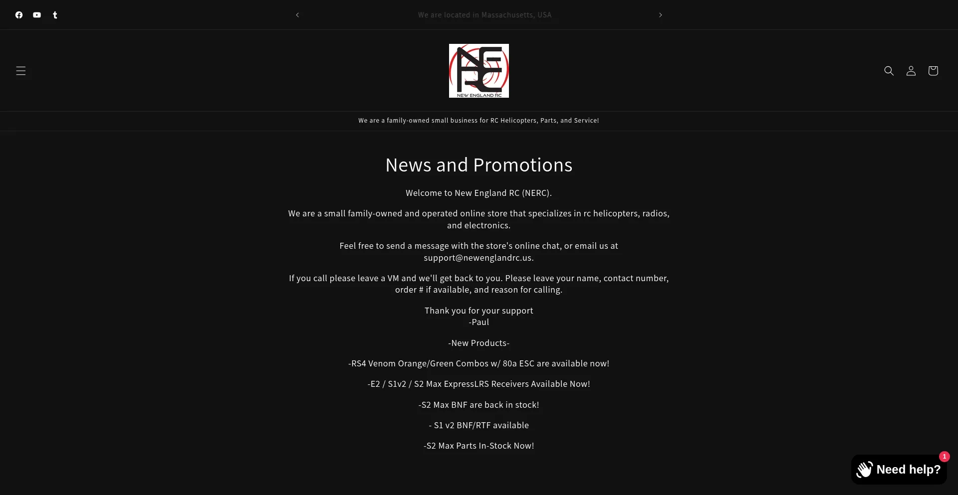 Welcome to New England RC ! We are a family-owned small-business retailer for RC helicopters, parts, and service!