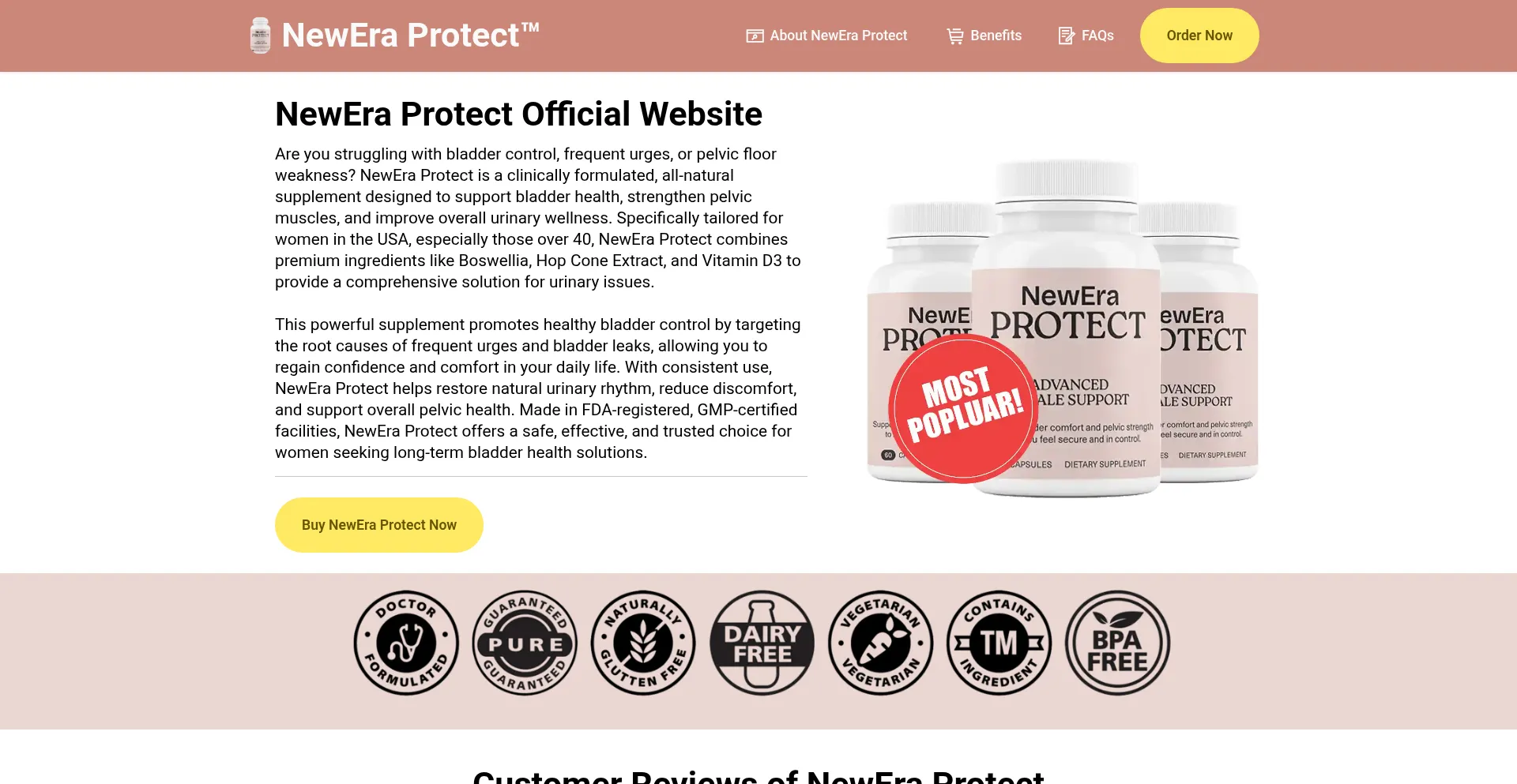 Discover NewEra Protect a natural supplement designed for bladder control, pelvic strength, and urinary health. Safe, reliable, and backed by positive reviews.