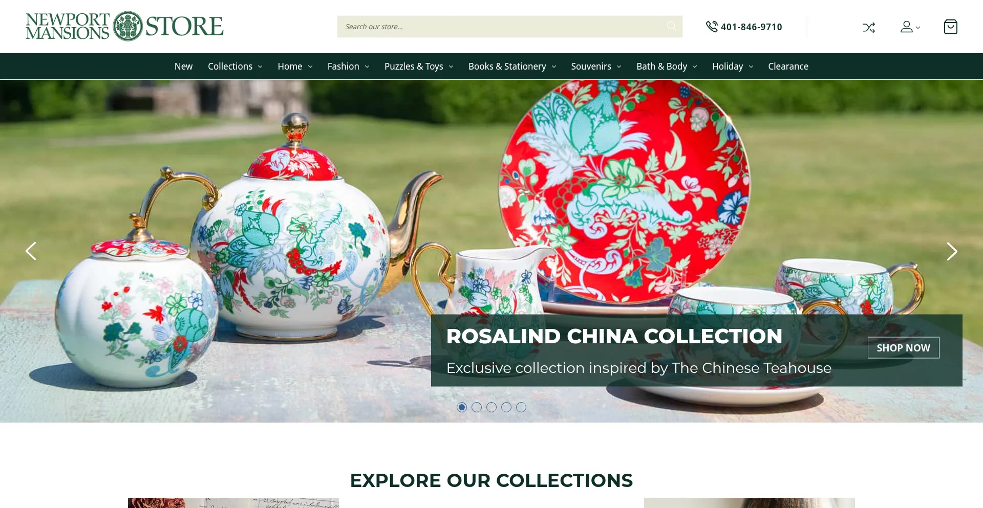 Your online store for Newport Mansions items. Gifts, jewelry, home furnishings, books, souvenirs & apparel. All things distinctly Newport Rhode Island.