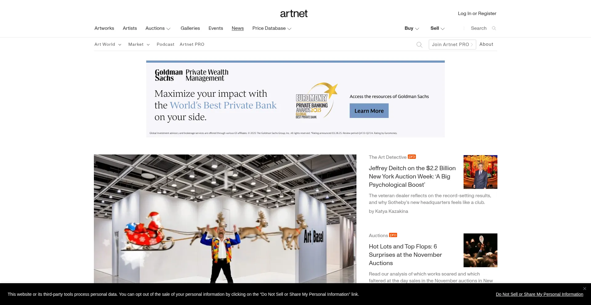 该网站实现符合GDPR或CCPA等隐私法规的cookie同意机制。这表明 news.artnet.com 遵守数据保护标准并为用户提供对个人数据收集实践的控制。