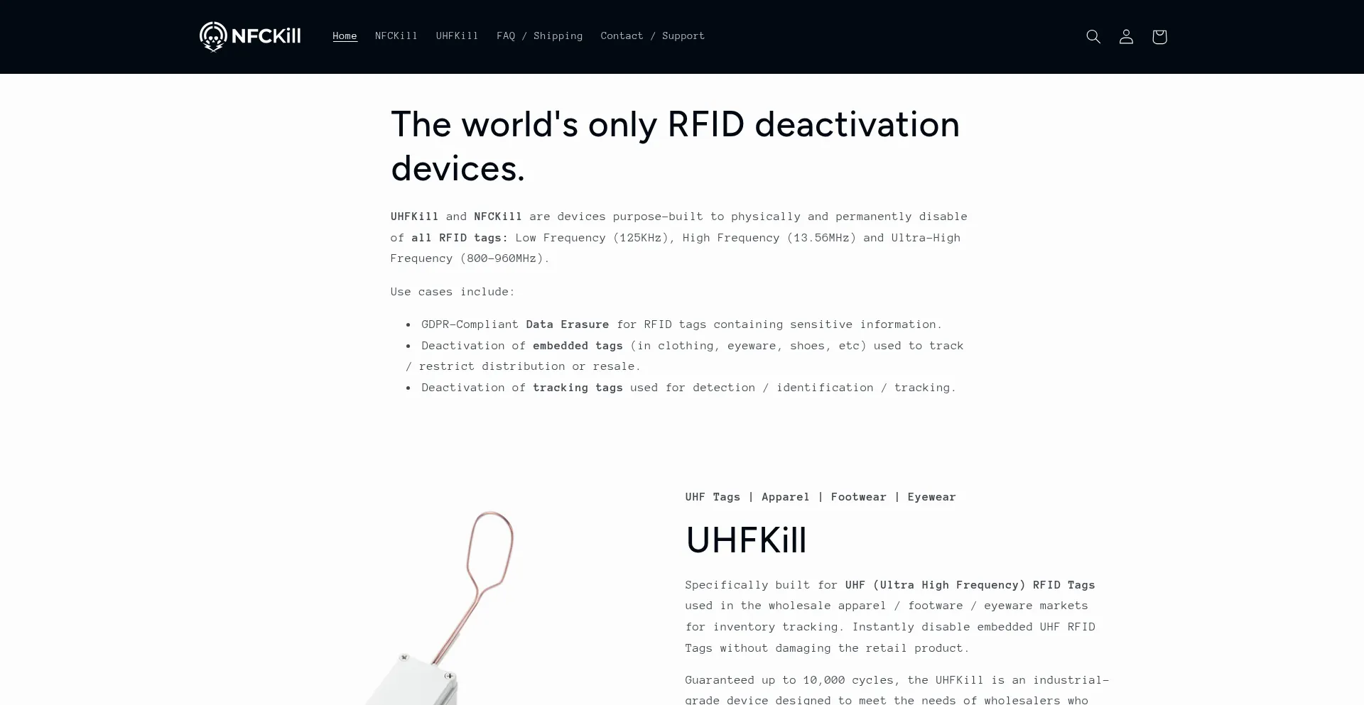 The UHFKill and NFCKill are devices that disable RFID tags and erase RFID tags. Built to deactivate RFID shoe tags, tags in sunglasses, securely erase RFID tag data. The NFCKill...