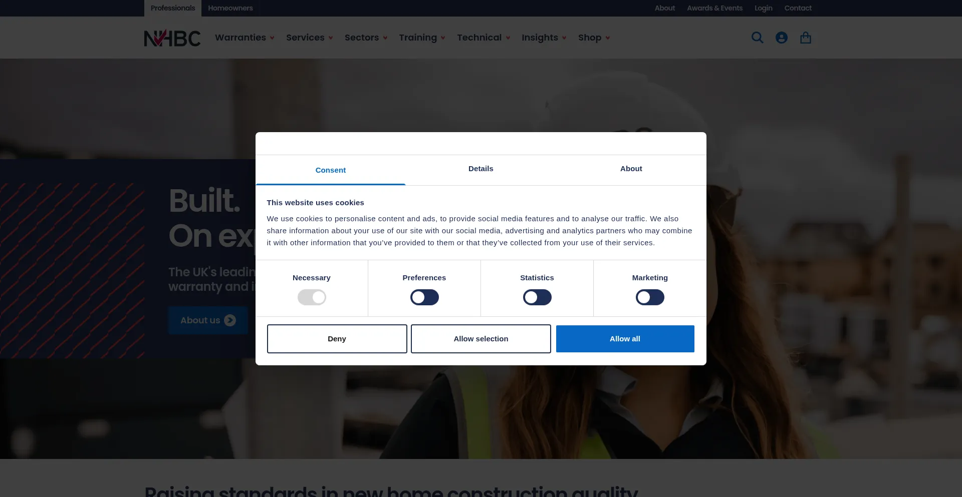 该网站实现符合GDPR或CCPA等隐私法规的cookie同意机制。这表明 nhbc.co.uk 遵守数据保护标准并为用户提供对个人数据收集实践的控制。