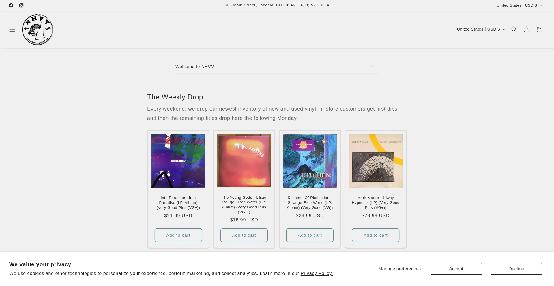 该网站实现符合GDPR或CCPA等隐私法规的cookie同意机制。这表明 nhvintagevinyl.com 遵守数据保护标准并为用户提供对个人数据收集实践的控制。
