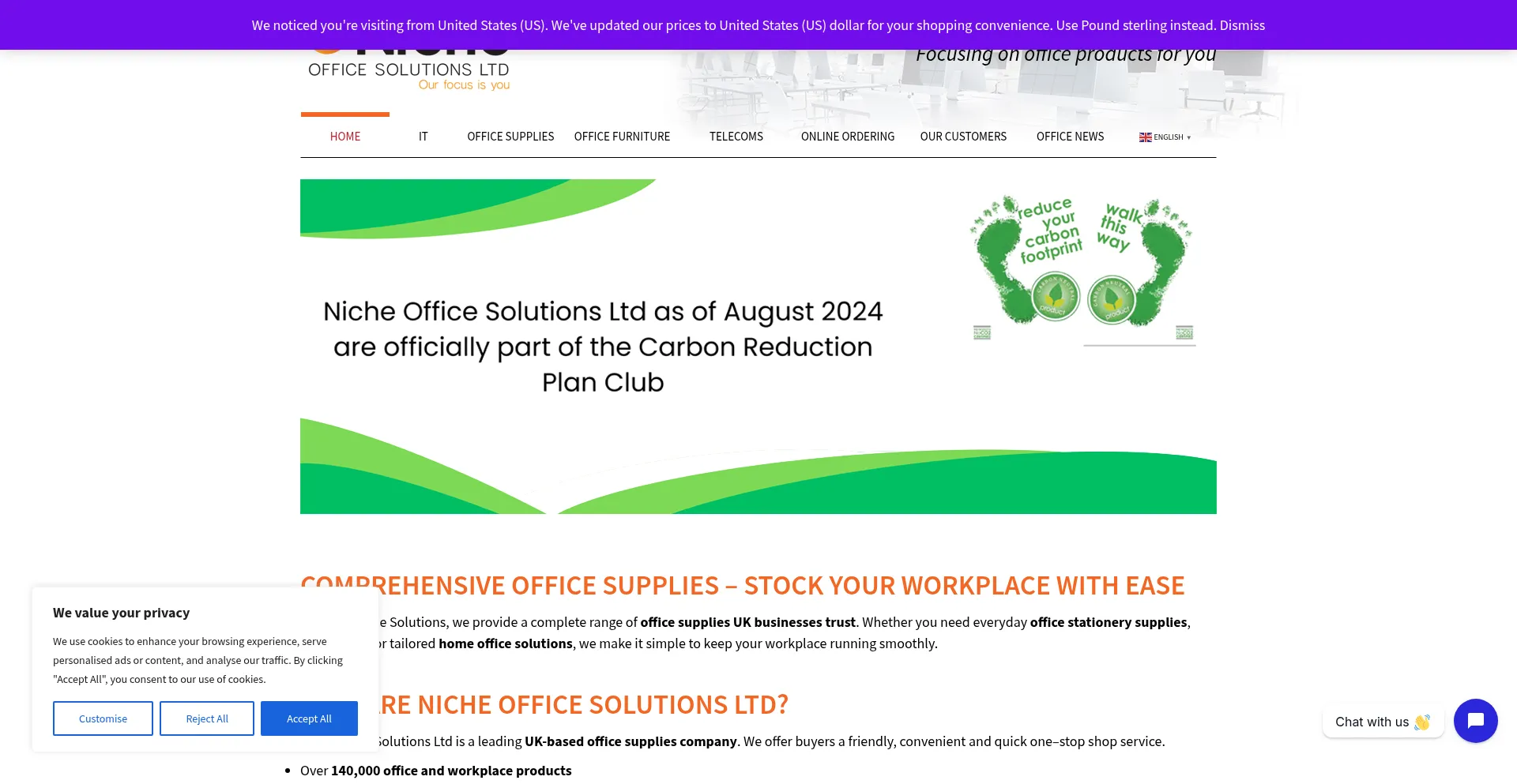 该网站实现符合GDPR或CCPA等隐私法规的cookie同意机制。这表明 nicheofficesolutions.co.uk 遵守数据保护标准并为用户提供对个人数据收集实践的控制。