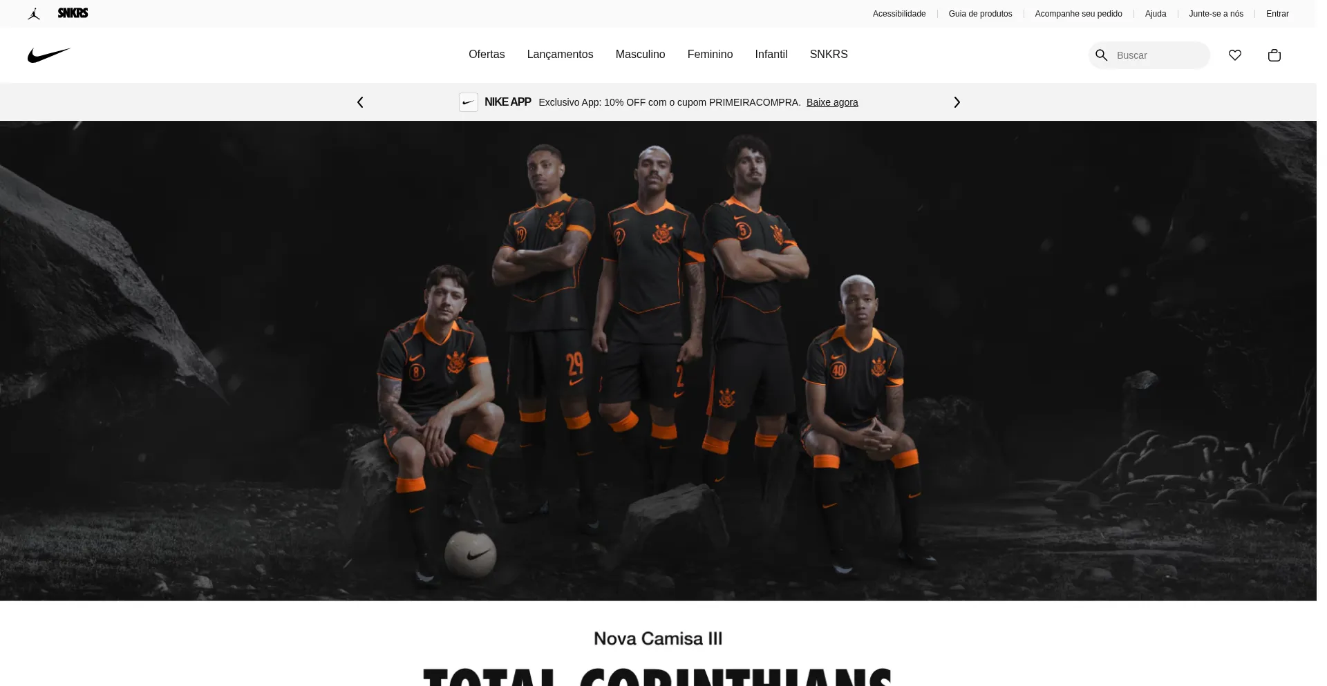 nike.com.br 拥有可用的 iOS 移动应用程序,表明为 Apple 设备用户提供跨平台可访问性。