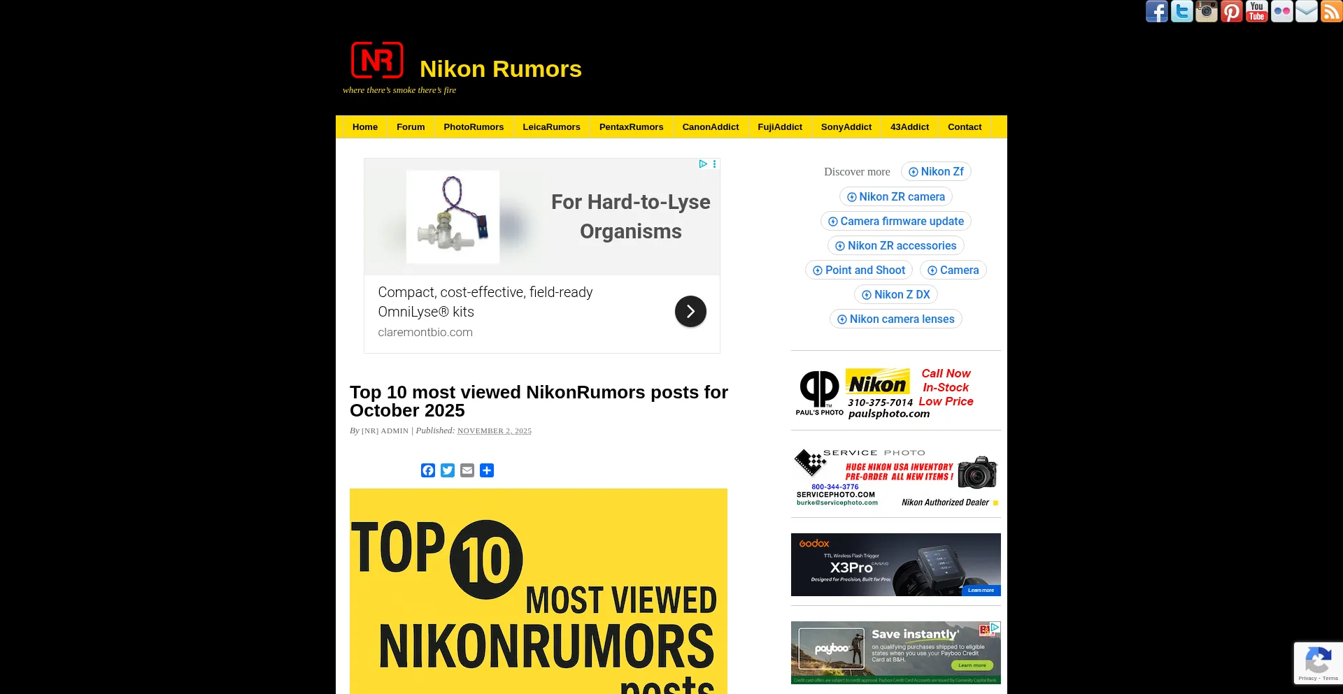 网站上存在社交媒体链接表明 nikonrumors.com 在社交媒体上维护官方账户,这是可信度和参与度的积极信号。
