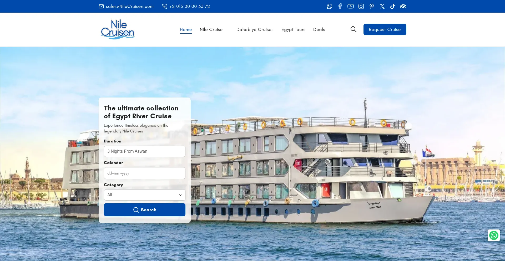 网站上存在社交媒体链接表明 nilecruisen.com 在社交媒体上维护官方账户,这是可信度和参与度的积极信号。