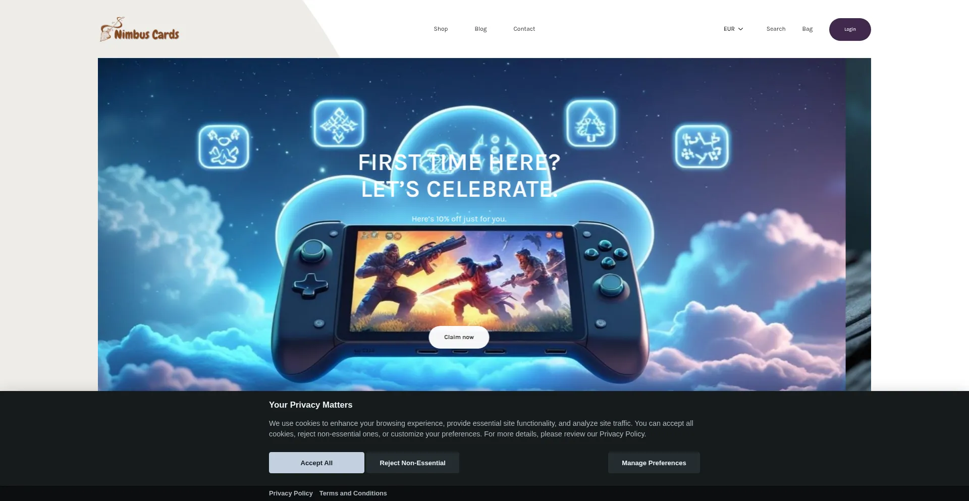 该网站实现符合GDPR或CCPA等隐私法规的cookie同意机制。这表明 nimbuscards.net 遵守数据保护标准并为用户提供对个人数据收集实践的控制。