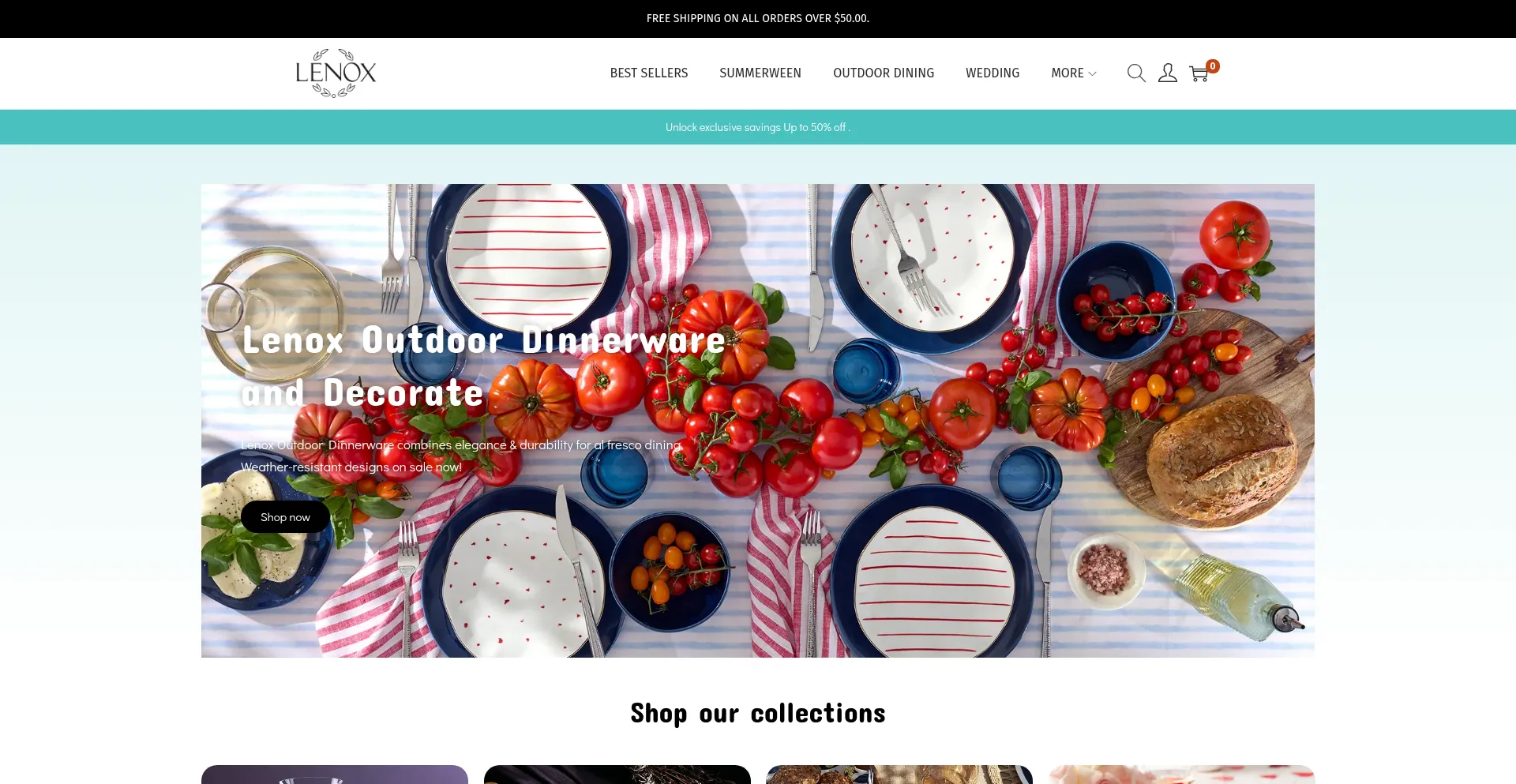 Unlock exclusive savings Up to 50% off . Lenox Outdoor Dinnerware and Decorate Lenox Outdoor Dinnerware combines elegance & durability for al fresco dining. Weather-resistant de...
