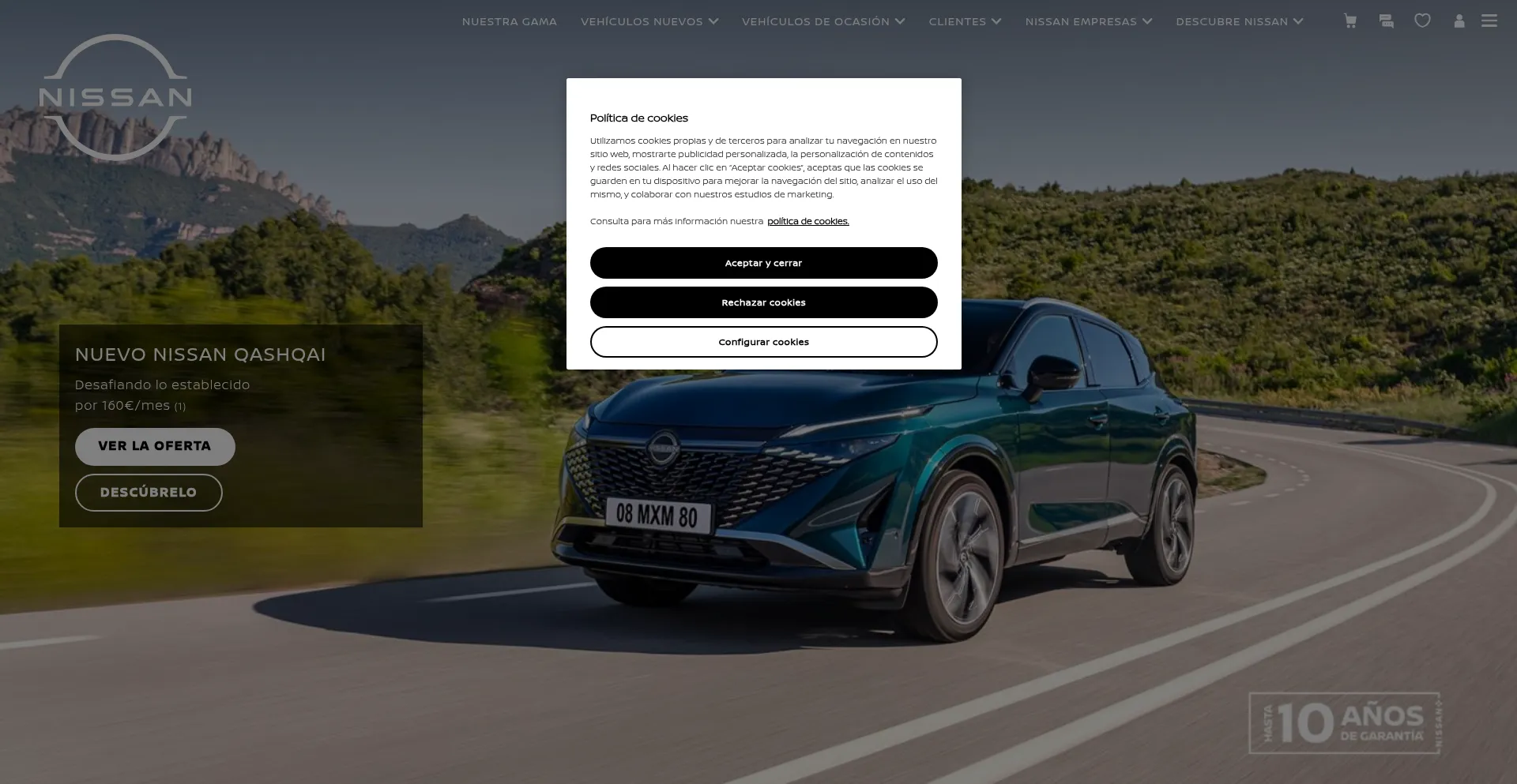 该网站实现符合GDPR或CCPA等隐私法规的cookie同意机制。这表明 nissan.es 遵守数据保护标准并为用户提供对个人数据收集实践的控制。