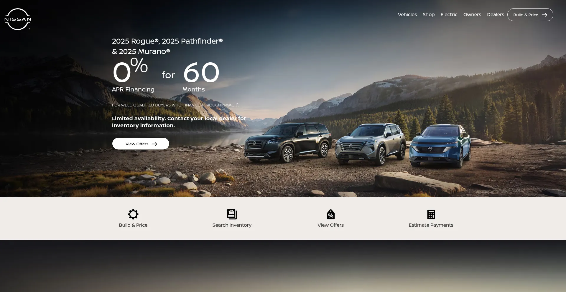 Shop online for the newest Nissan cars, trucks, crossovers, SUVs and electric vehicles. Explore offers, compare models, calculate payments and more.